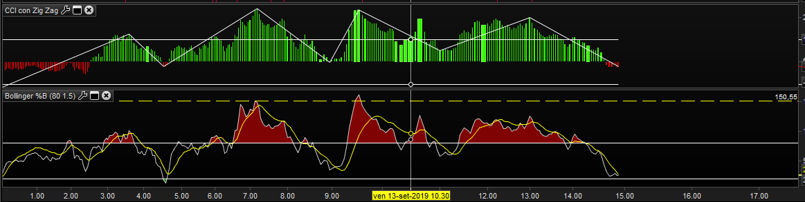 ti allego la foto del CCI con zig zag l’indicatore Bollinger %B dovrebbe essere similare.
