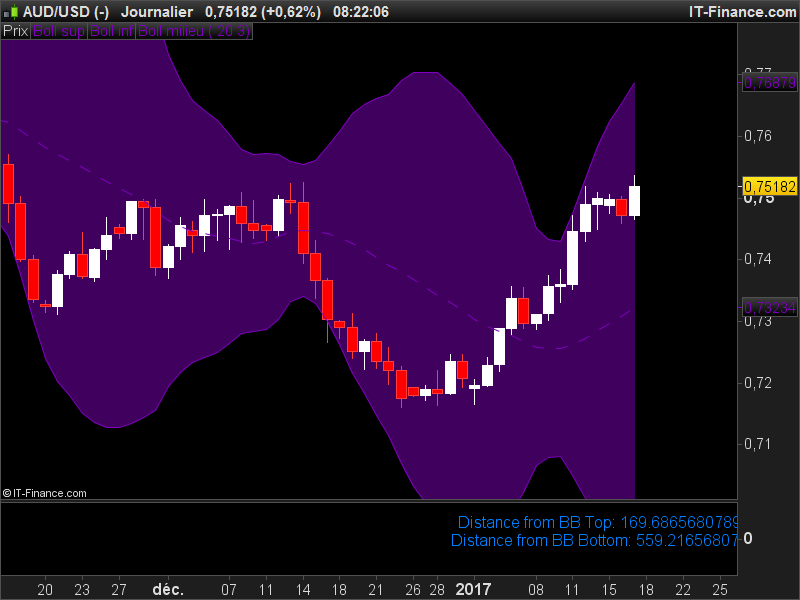 Could you kindly assist by helping me with a small text dashboard which shows the distance of price from the Bollinger Bands Top and Bottom? Sort of just like your CCI dashboard example you posted for us a while ago.