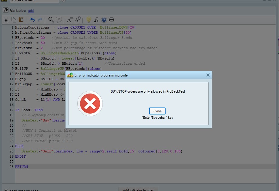 Hello, you will notice from my correspondence that am not an expert in the probuilder language, so am relying on the the lessons under this Prorealtime: