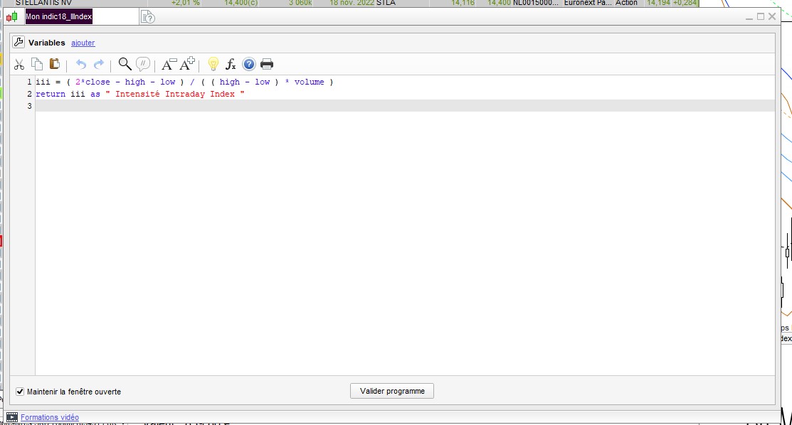 ai programmé l’ Intensité Intraday Index :