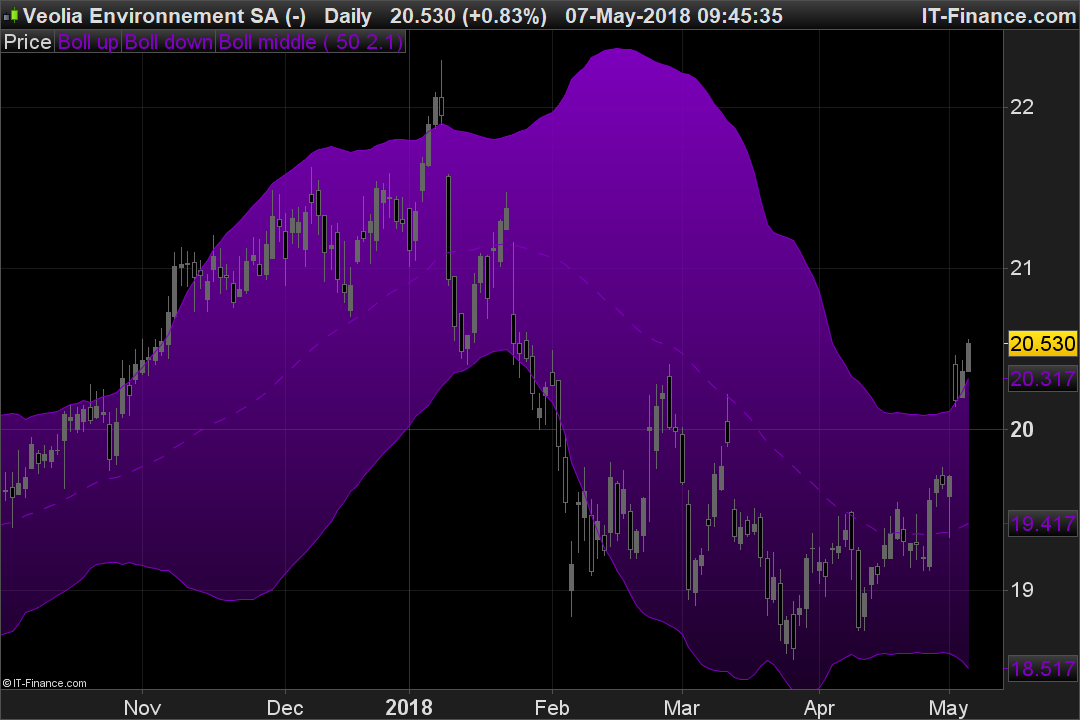 //Bollinger Bands (John Bollinger 50/2.1 settings)