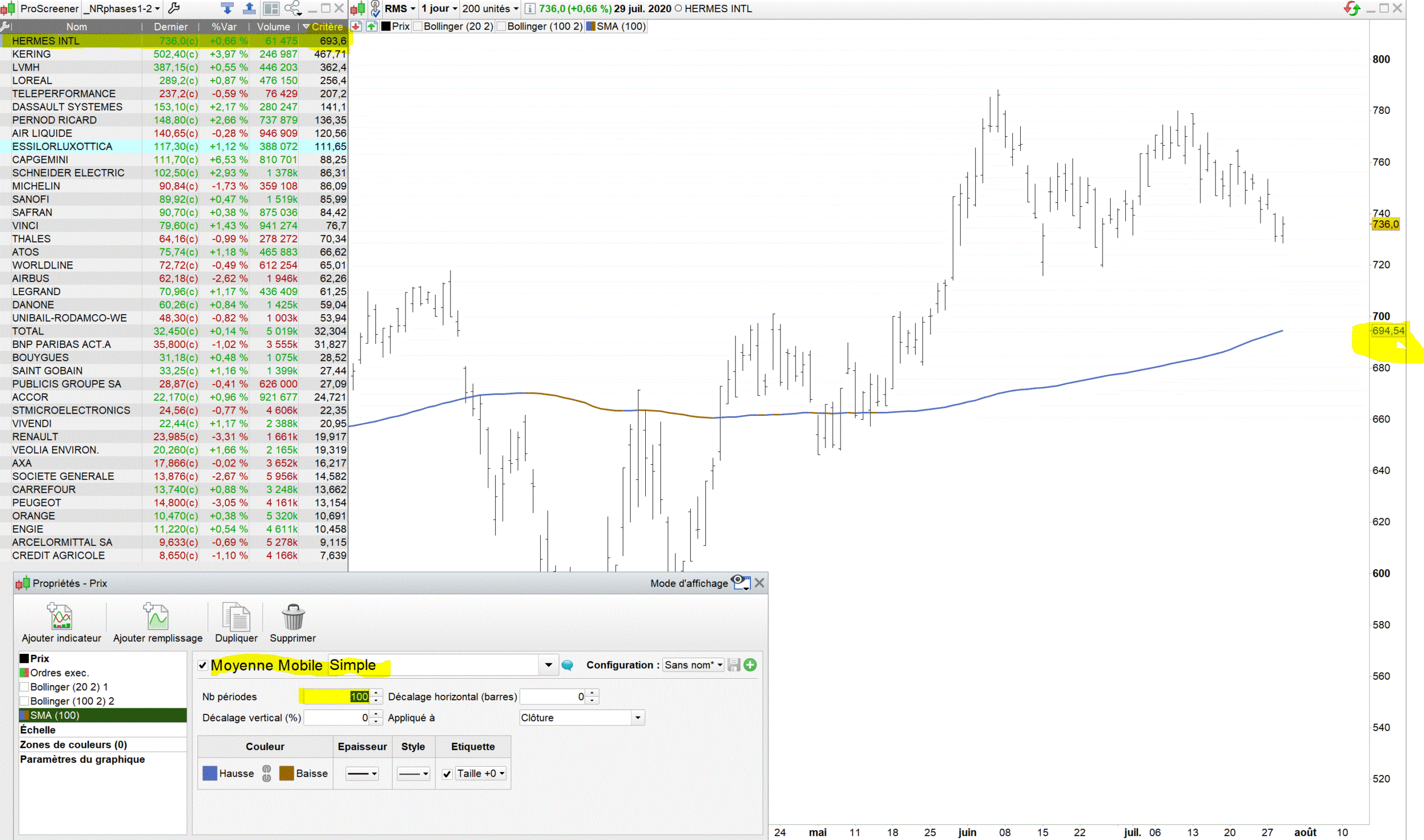 L’historique disponible sous ProScreener est de 254 bougies.