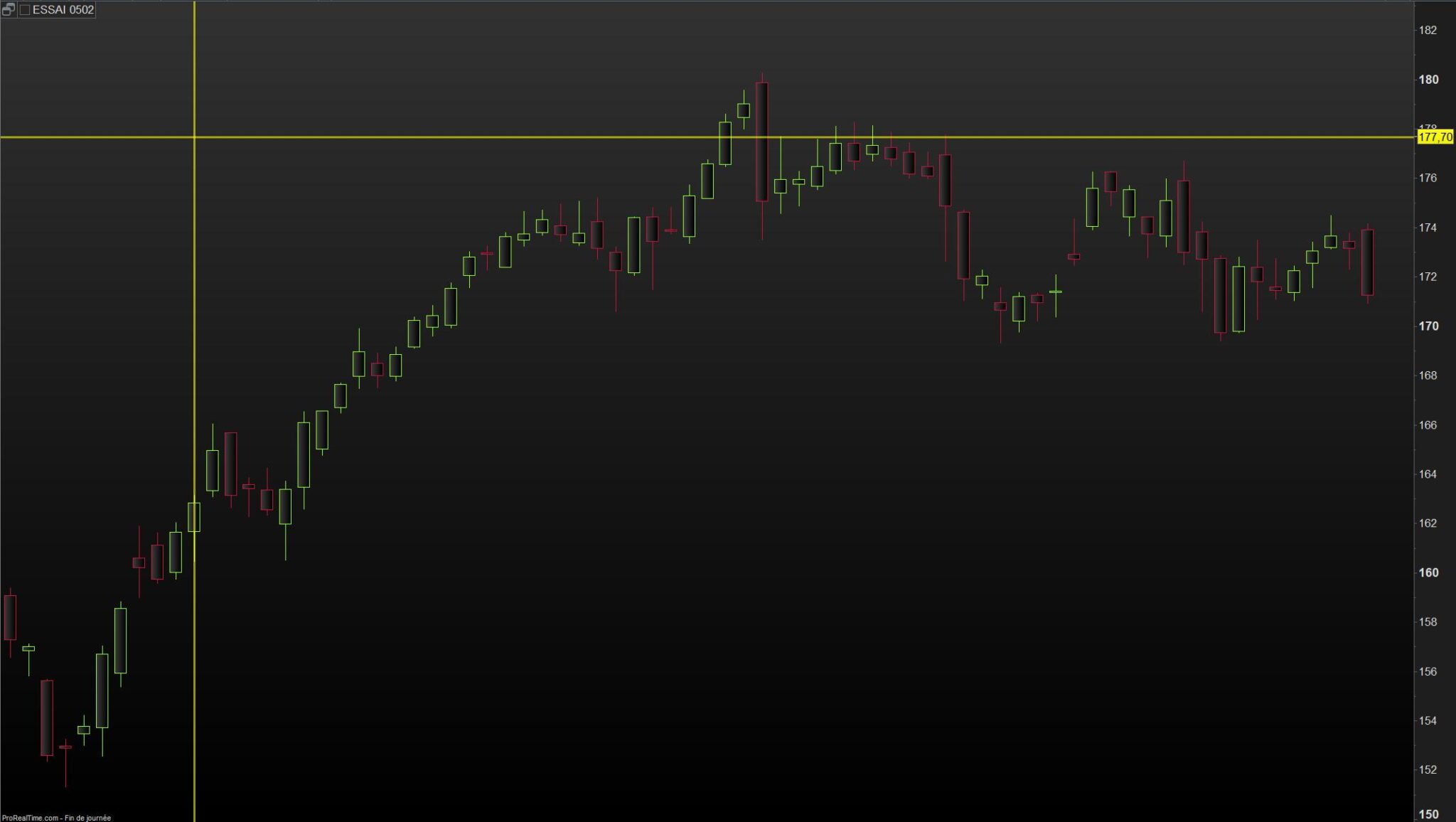drawsegment(barindex, high, barindex, close)coloured(143,255,31,255) STYLE(line, 2)