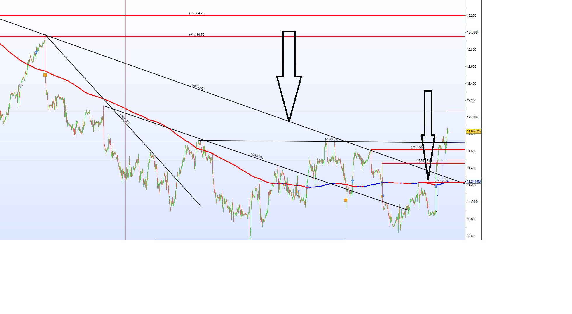 Ejemplo: En la imagen hay do flechas que apuntan a un soporte (DRAWHLINE) y a un canal (DRAWSEGMENT) que quiero borrar con alguna instrucción.