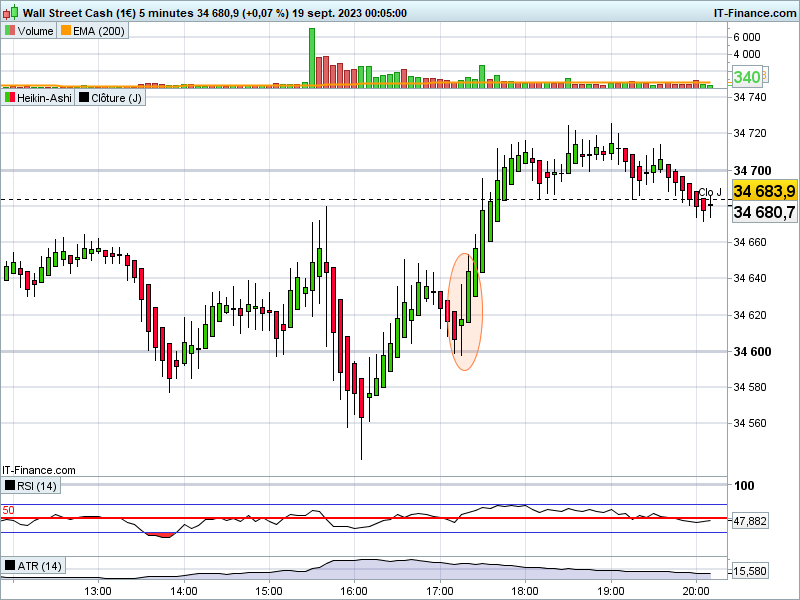 Bonjour, Je cherche à faire un screener qui détecte bougie Heikin Ashi baissière sans ombre supérieure et la suivante Heikin Ashi haussière sans ombre inférieure.j’ai regardé ici et là et je n’ai rien trouvé. Merci d’avance pour les retours si quelqu’un à déjà fait ce screener. Bonne journée