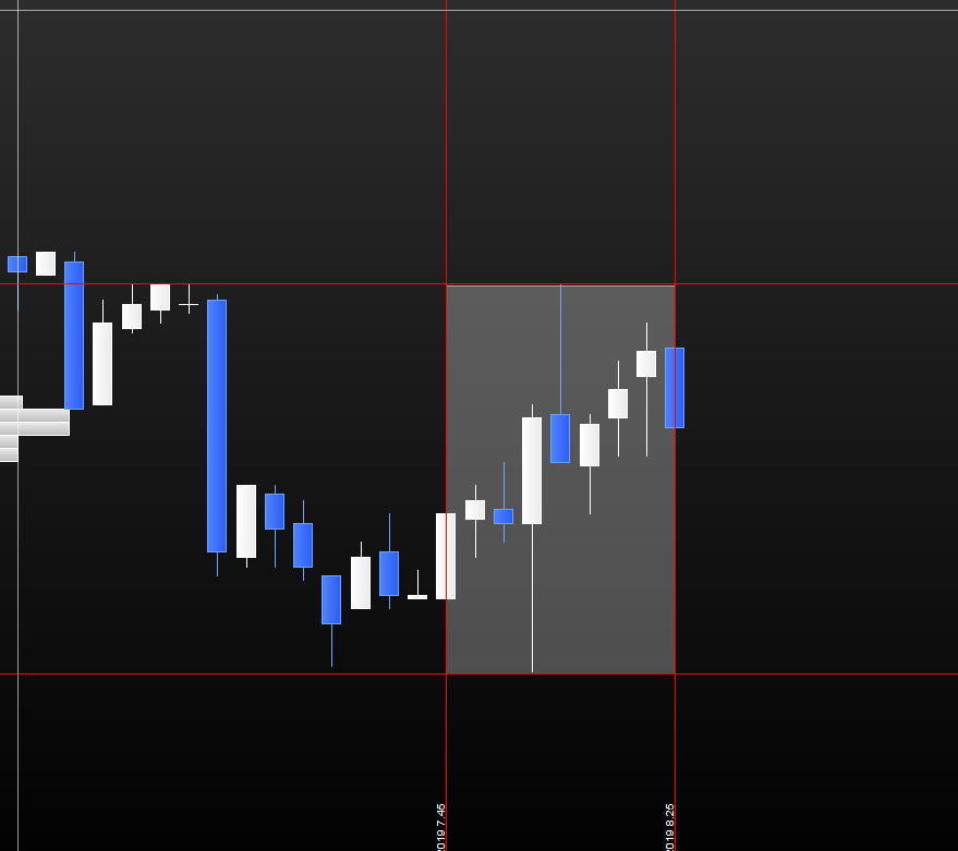 volevo poter indicare per qualsiasi TF per le ultime nove barre il min e max e la nona e ultima barra o con un quadrato o con delle linee come in figura.