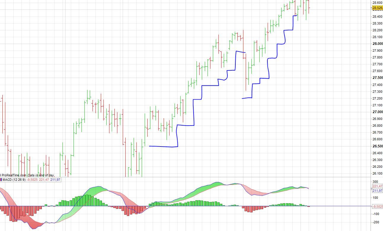 This “box-dragging-stop-loss (stopprofit)” triggert automatically on the ‘signals’ of an indicator, here for example the MACD.