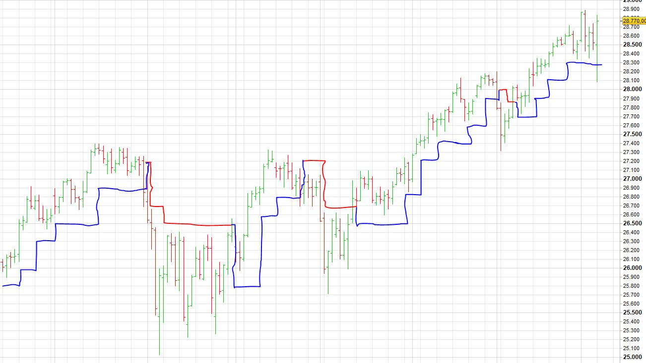 In this example to explain I use the hundreds and the low of the previous bar to set the levels of the stoploss of the long trades. I would like to give in this stoploss in that it should take the ‘hundreds’ (23.100, 23.200. 23.300 etc etc) of the graph of the Dow. It must make a stoploss at the hundred-counts (round numbers). If the close of the bar reach over the second second next hundridline above? The stoploss should automatically move upward a box size.. in this case hundred (100)..
