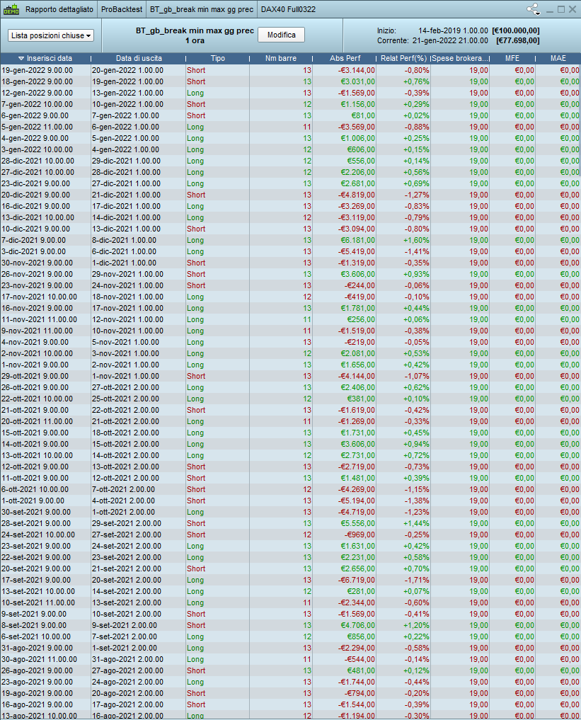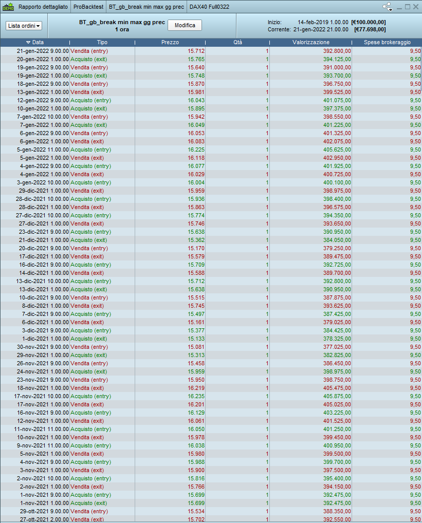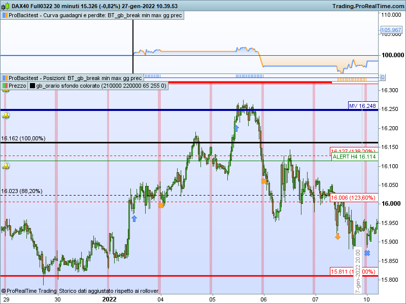 Ciao sto facendo un debug e non mi pare funzioni, il 3 gennaio dovrebbe entrare alle 9 ma entra alle 11, allego il grafico del back test. Cosa sbaglio? Grazie