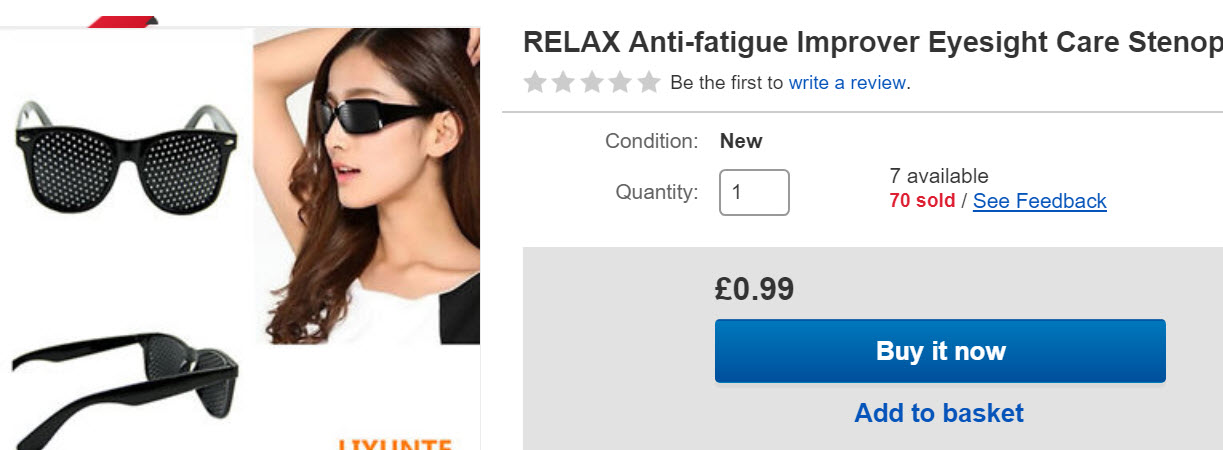 Actually below are what I wear on the computer when my eyes are tired!  Pinhole glasses (£4 or £1 from china!) ,,, think physics in school and pinhole cameras and that’s how they work!  Well worth checking out for anybody who’s eyesight is not what it used to be!