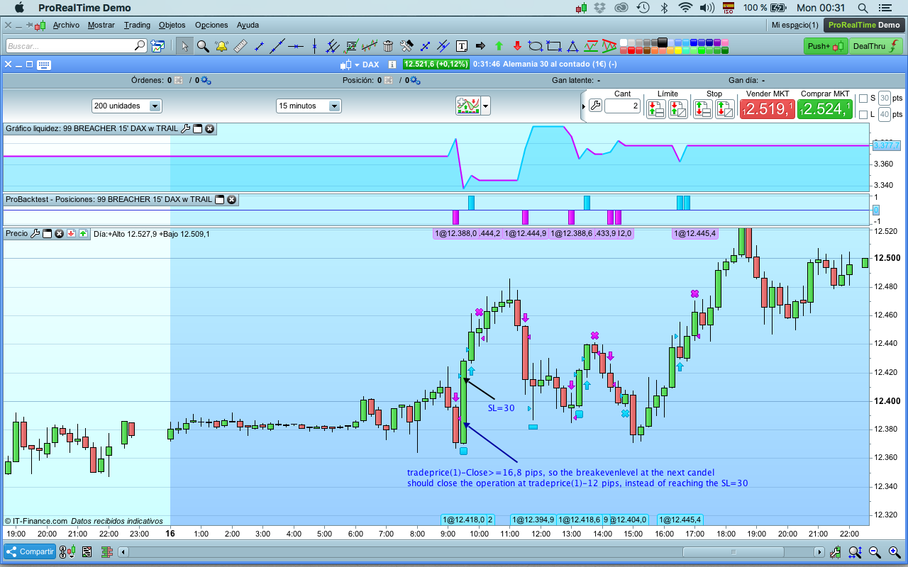 Anyway, looking into how PRT works I think that any position is taken at the close of the current bar (for EXITSTOP / SELL), and not while you are in the current candle (evaluation of IF breakevenlevel>0 THEN…).