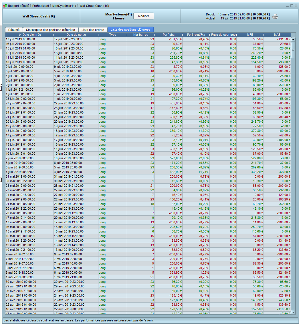 Pour le moment, en ne faisant pas de stop suiveur et de breakeven, le backtest me donne positif depuis 2015 (cf première figure). En y regardant de plus près, je me rend compte qu’un nombre non négligeable de mes trades perdant, ont été gagnant à un moment donné (cf deuxième figure), se retrouver à -200€ alors qu’on pouvait avoir 152€ de gains est des plus rageant…