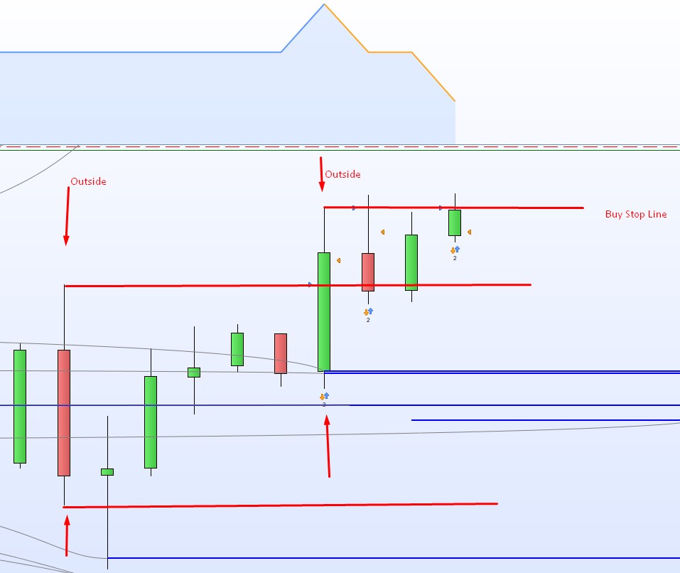 Above we have the SL and TP with 20 points and the trade starts directly in the 1.candle after the Outside and wins.