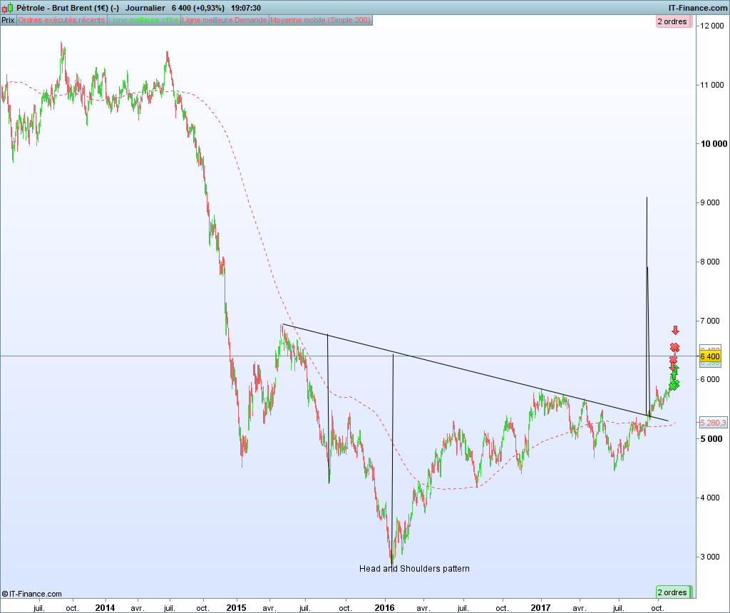 If you analyse the price of Brent,there is a strong bullish bias : Brent and WTI are in a head and shoulders pattern and the target is not reached yet.