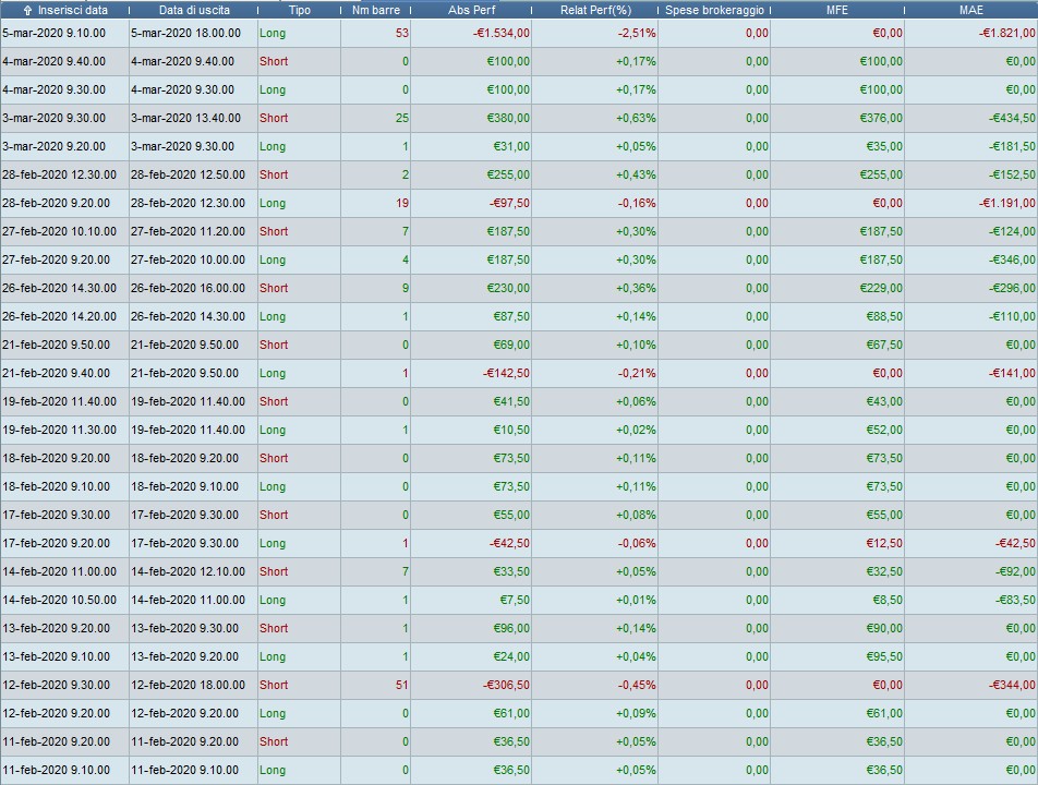 Mi dici qual’è la data e l’ora della candela d’entrata, perché a me il 5 marzo fa un’entrata LONG corretta alle ore 9:10 (perché aveva superato il massimo delle ore 9).