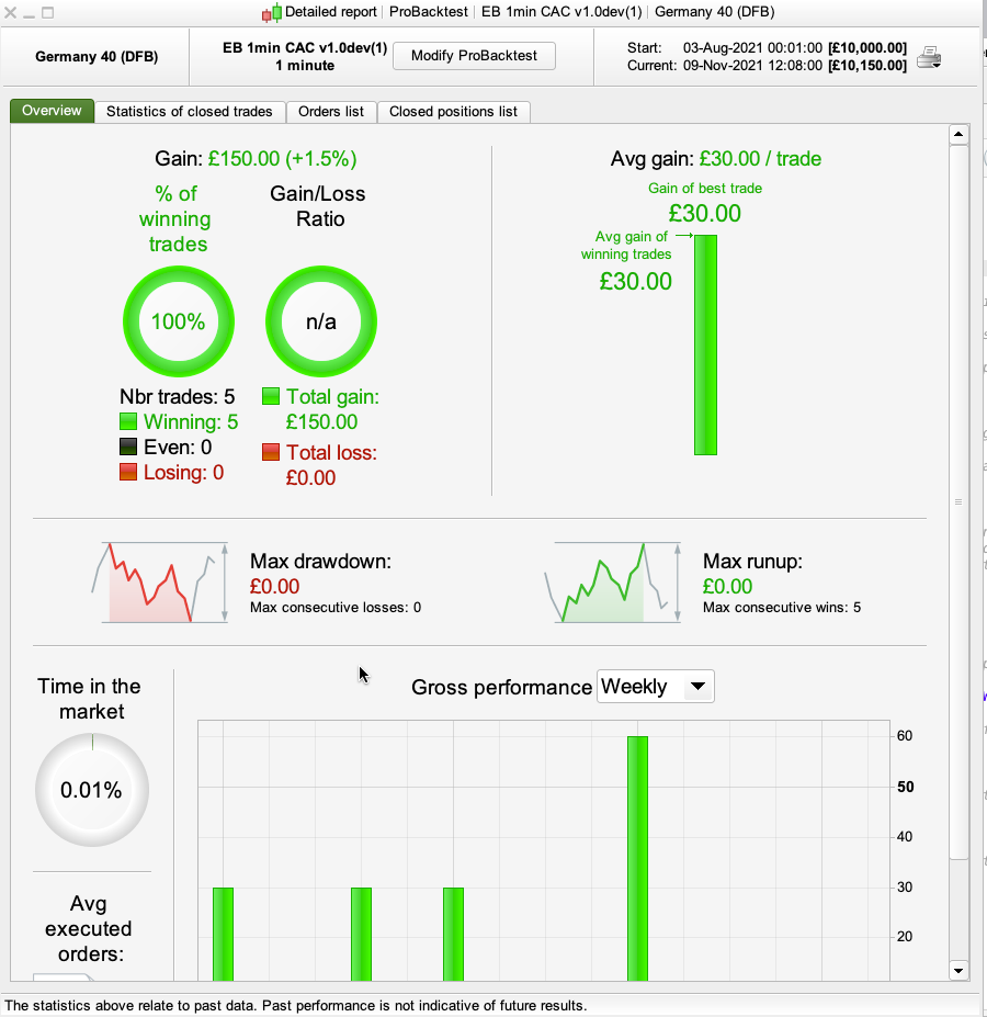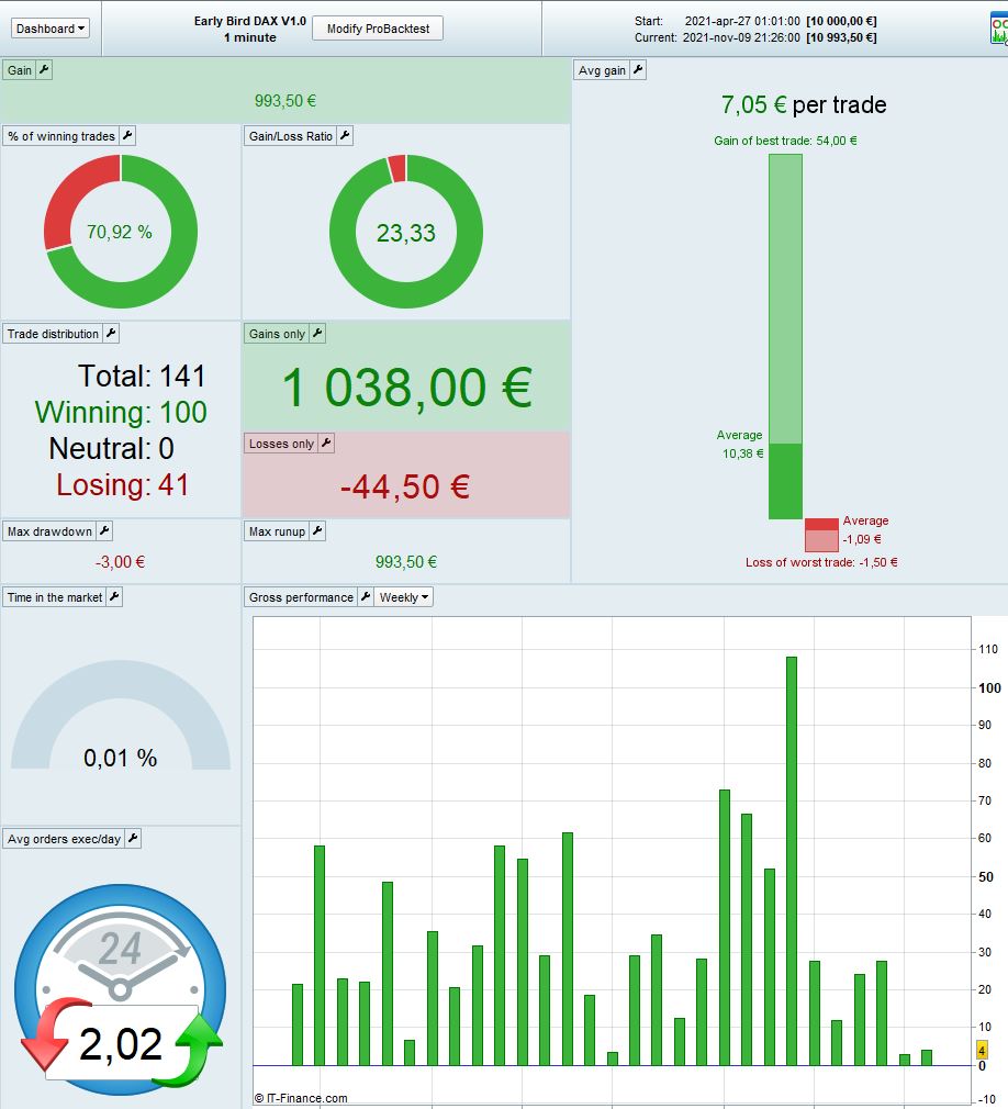 Hi, I tested the strategy as written on the DAX and it does not seem to work! I moved the hour to the open and it wins 100% of the time with a tweak using a 5 mon bar for direction backtested 100,000 units. See attached.