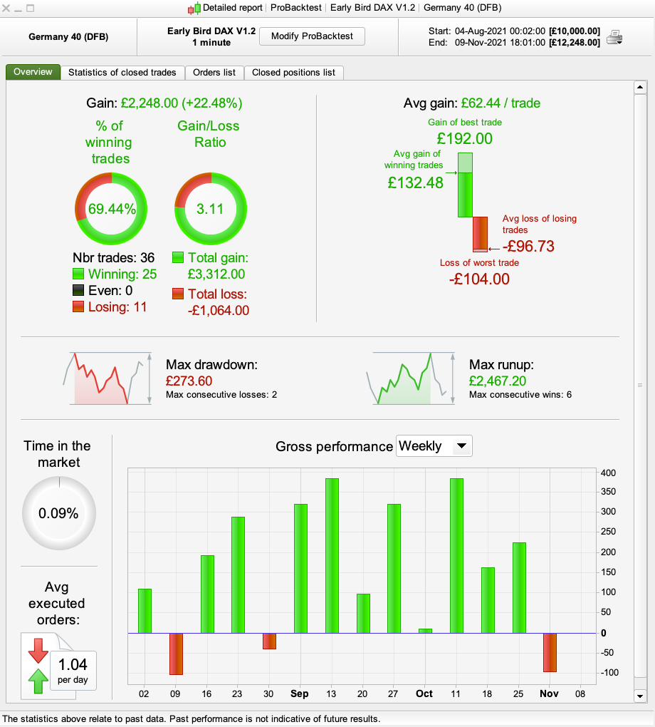 This early bird bot potentially trades 144 per year (roughly) with a potential outturn of 80%+ On a £10k account that’s £8k or £55 per trade! No matter what you are doing