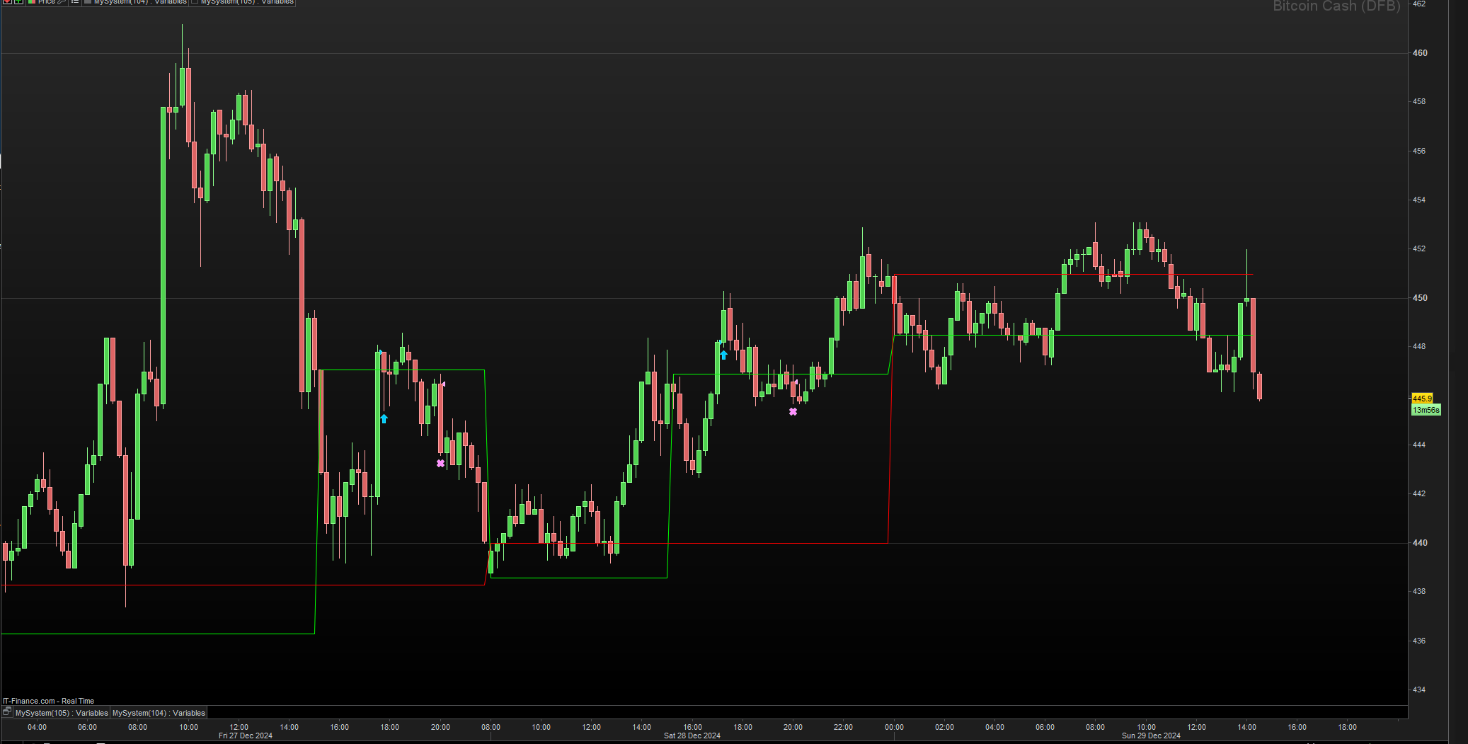 Poiché le linee di intervallo vengono ripristinate ogni giorno, la creazione di valori predefiniti come sopra, aiuta con il ridimensionamento del grafico con le linee di intervallo visualizzate.