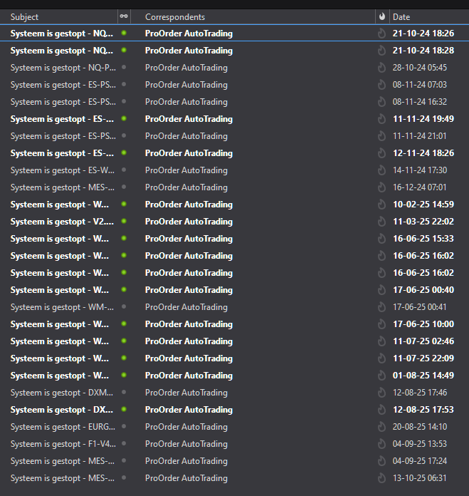 This is not what I am used to of IG, but IG might have changes “computer system” because of their weekend trading stuff. Thus, IG never ever has been “not available” and I do sufficient trades to know of such an anomaly. Not so with IB. IB is not there for many times a day BUT PRT applied provisions for that (in cooperation with me and ever trying). But I apply things too, like shutting down trading from 06:25 to 06:35 (Amst) because this is where IB resets (it’s just not there and when longer than what PRT takes into account, the same error “Could not determine status of last order” is our share. Of course this is subject to daylight savings differences again, so it’s all quite messy to implement.