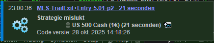Further, this trade operates on a SD exit or Trailing stop (must be SD exit then next candle open). The auto log has recorded the anomoly as price action affecting the outcome. OK