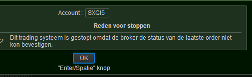 Oh, I am so happy (not). The 23:00 is at market closing. The Request for Cancellation (verzoek tot intrekking) is a new one for IG (but I know it from IB). So what will happen with this one ? no idea. The actual error now occurred for the 2nd time with IG “The broker could not determine the status of the last order”. This is new (and thus the 2nd time) since the mess from the beginning of September. It can not be a coincidence because, well, I know this message a 100+ times from IB.