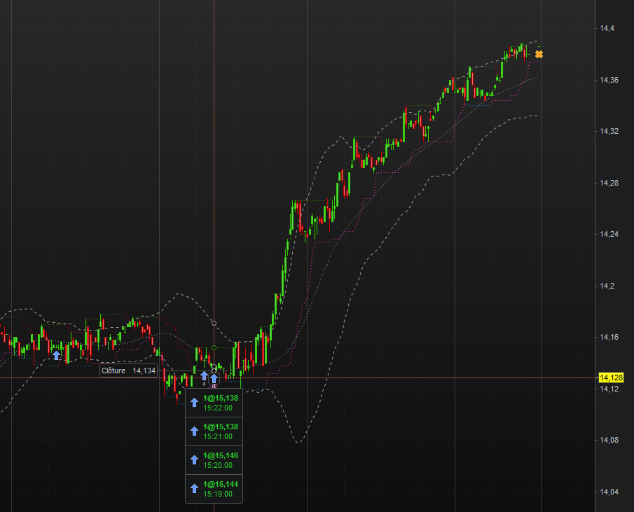 Pour résumer, j’entre en bas à 15,142 et je sors plus haut à 13,386.
