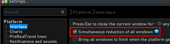 Il faut décocher cette case pour réduire individuellement chaque fenêtre de la plateforme.