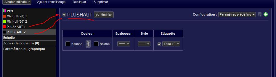 En dupliquant un indicateur 1 (plushaut1) , j’ai voulu changé une valeur en param dans indicateur 2 (plushaut2)