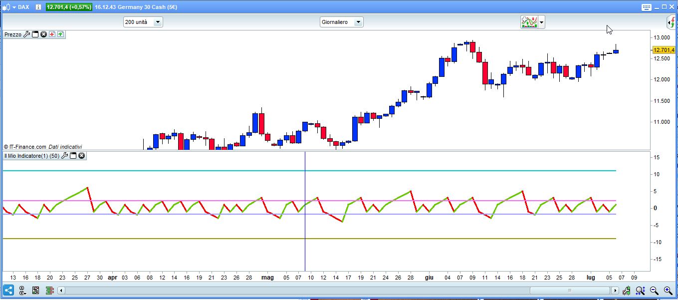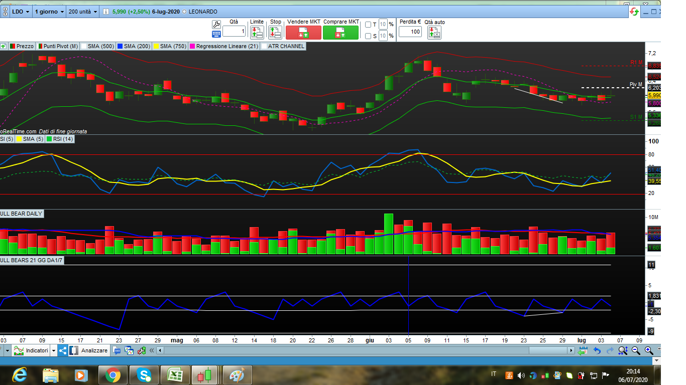 La linea inserita è perfetta Roberto, per lo screener vorrei estrarre delle divergenze LONG che si creano sull indicatore BULL BEAR a 21 gg come dall esempio che allego sul titolo Leonardo, che in questo caso l RSI non mi evidenziava. Un secondo screener da usare per gli ETF dove si evidenzia una eventuale divergenza Short. Spero di essermi spiegato. Grazie mille.