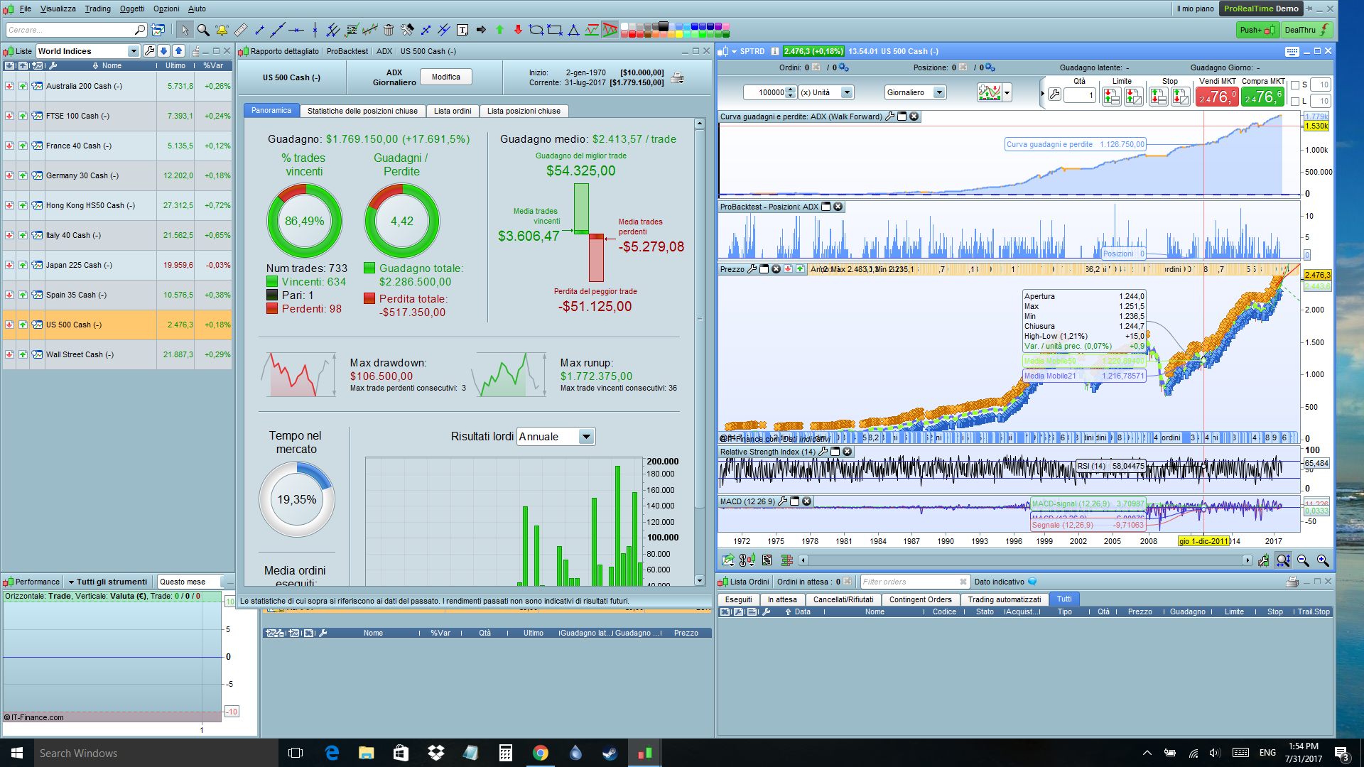 Mi ha sempre incuriosito molto l’idea di operare sui mercati finanziari e adesso, sotto la supervisione di un amico sto cercando di poter testare il mio primo sistema.