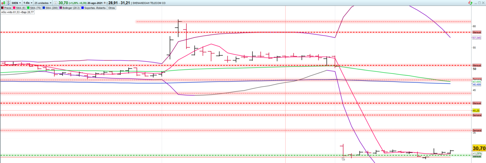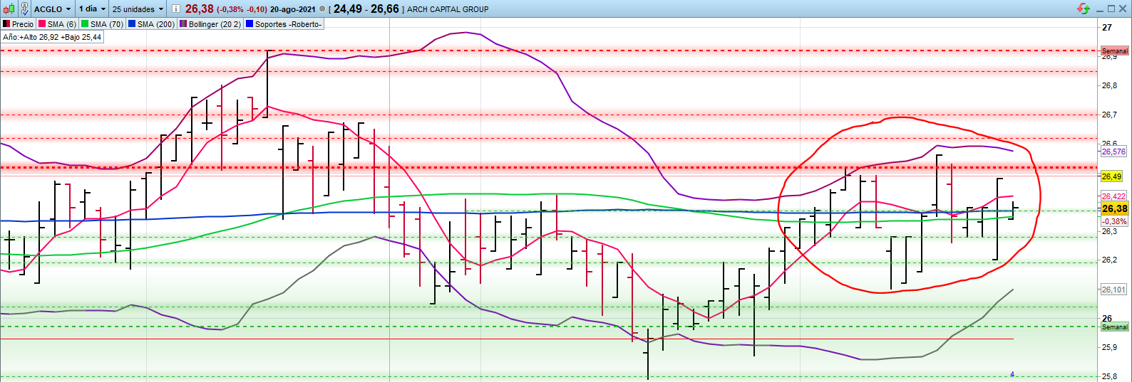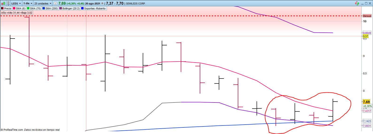 En ACGLO los valores cruzan la M200, invalidan la estrategia, no tendrian que salir, y SHIEN estan fuera de la M200, en cambio el de LEDS es justo el grafico que estoy buscando, con tres toques consecutivos a la M200