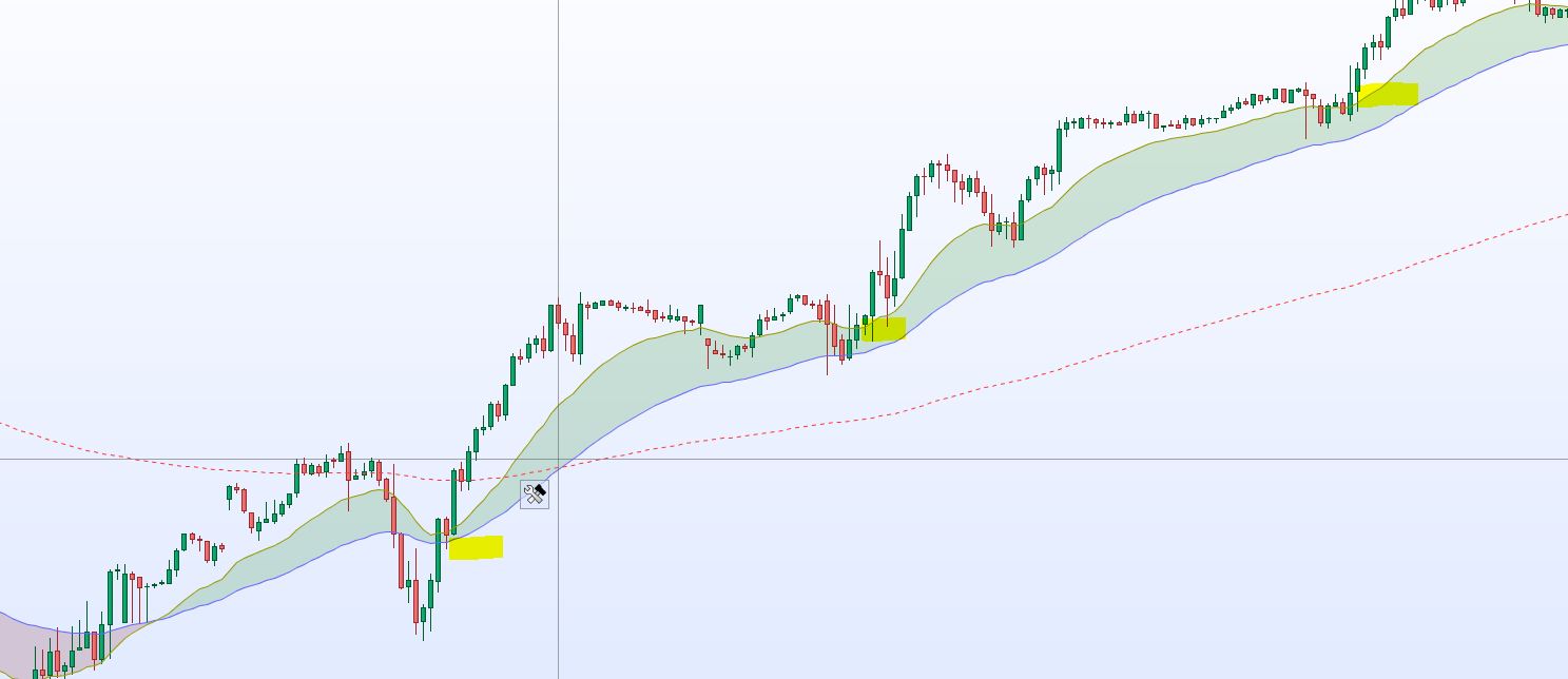 Do we have any Screener which identifies candle crossing/ bouncing from 20 moving average. I have included the picture. I am looking for candles having a Pear below.