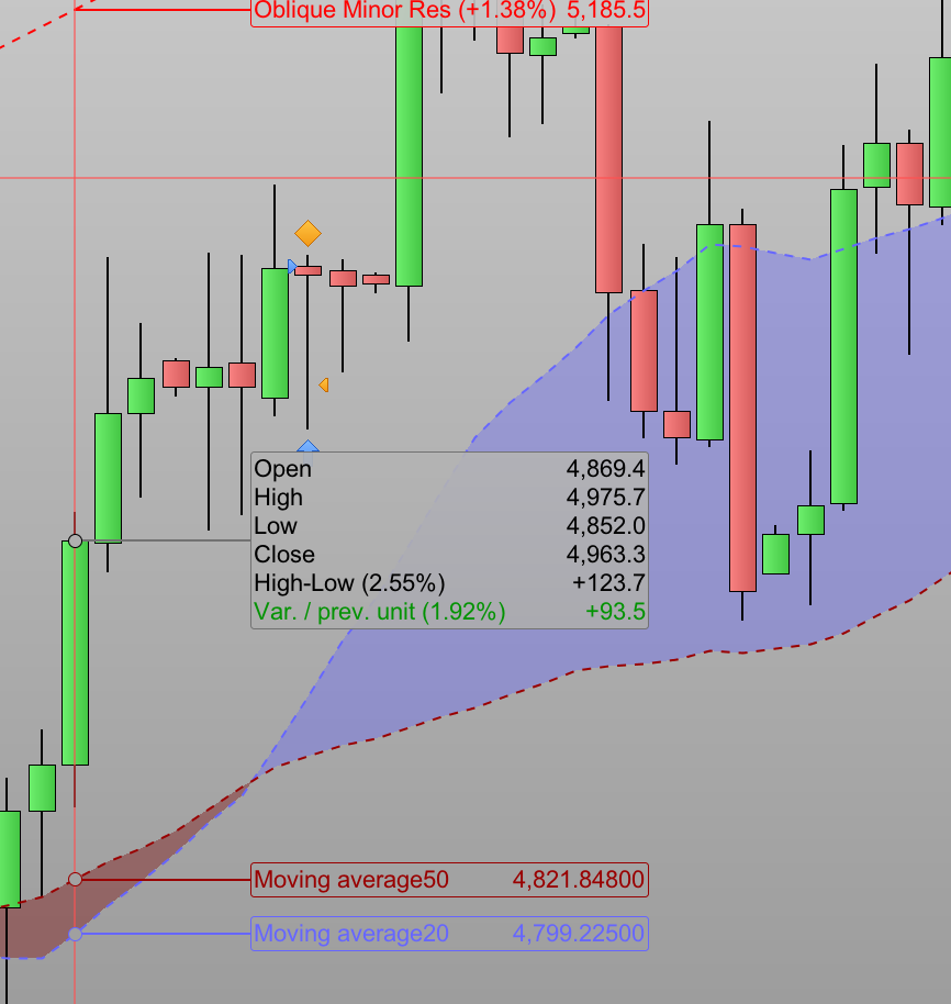I understand your point re crossing confirmation sure, thank you. My test was more specifically relating to vol. breakouts in terms of a given % under/over a 3-day ATR, which in most cases exceeded past that percentage in that same timeframe and basically didn’t seem to give me any option to buy the moment that specific % was hit, regardless of whether i wanted a confirmation or not basically, purely to assess what percentage would yield the best trades, but i may have entered conditions incorrectly then if you say “at market” happens immediately? In the programming window is still says only ever “At Market” while in the simplified it says “Next Bar Open” how can that be? In reference to MA crossing, it still feels like a flawed backtest (as per screenshot example attached) where the crossing happens between 2 TF’s and yet the buy still gets executed 2 daily charts later basically.. i guess i will have some fine tuning to do maybe 4hr intervals are worth investigating then also?