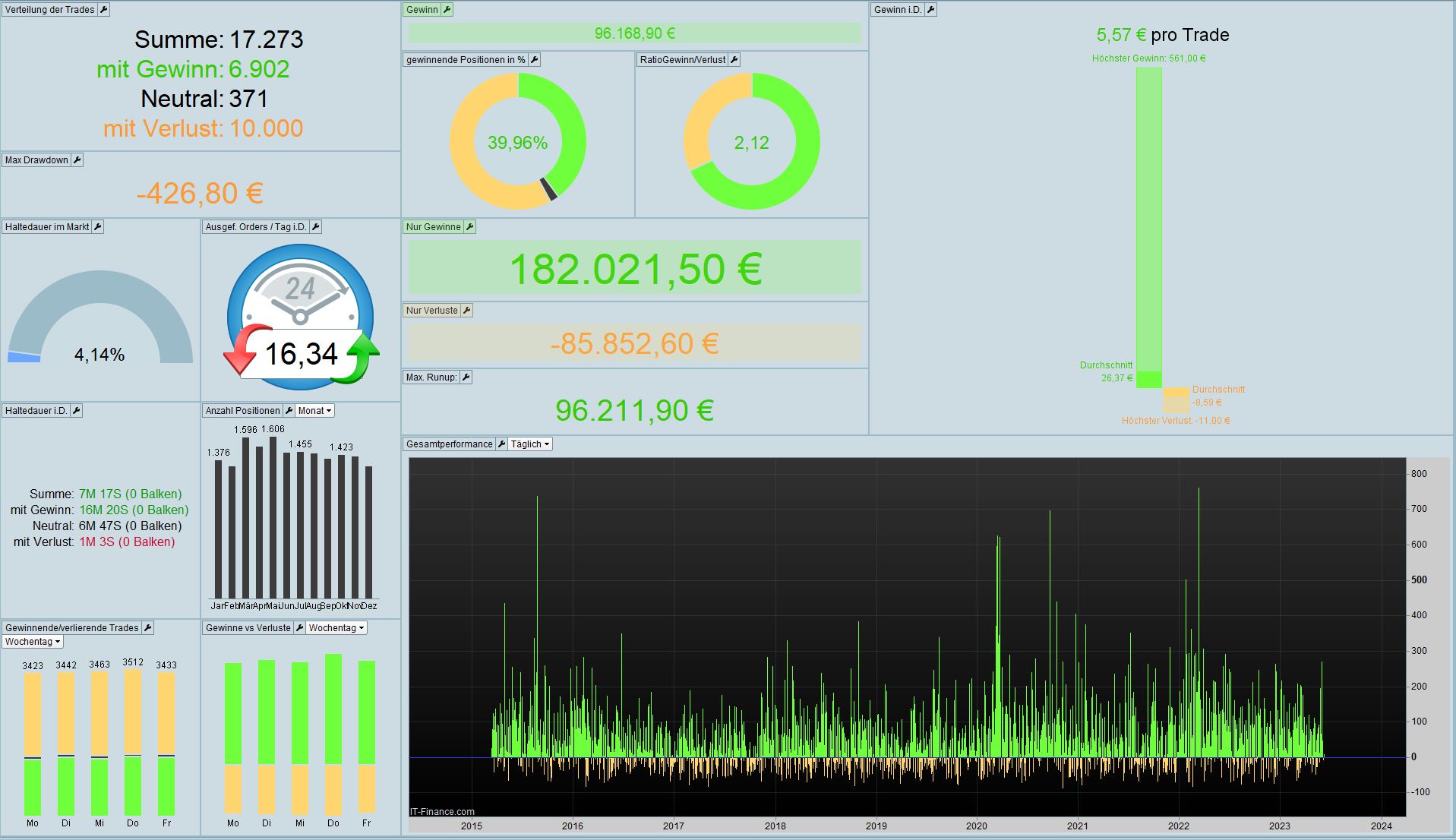 C’est parce que le Trailing Stop est si proche du prix (7 points ?) et donc > 60% des trades se clôturent > quelques secondes et < 2 barres à perte.