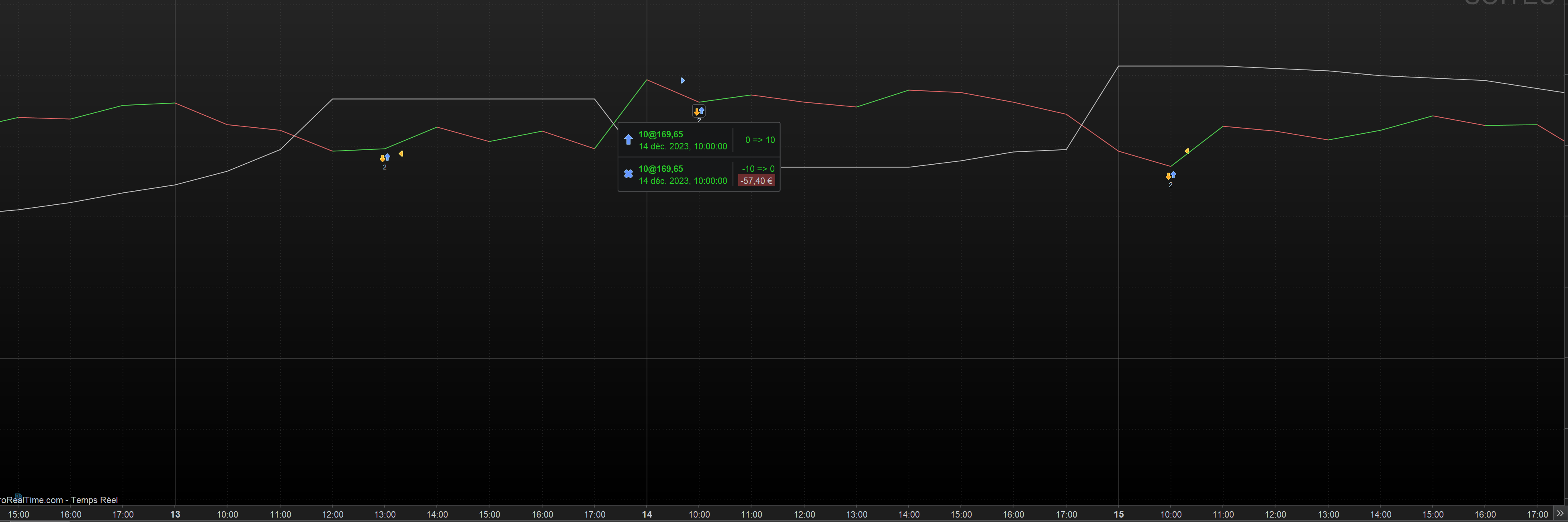 Avec toutes les autres formules que j’utilise il n’y a qu’un seul ordre à chaque fois, soit achat, soit vendre, les doubles ordres de ce type n’apparaissent que lorsque je dézoom trop et que deux ordres sont fusionnés par effet de tassement, tandis qu’ici sur le screen j’ai zoomé à fond afin de bien vérifier que les deux ordres ont bien eu lieu simultanément :
