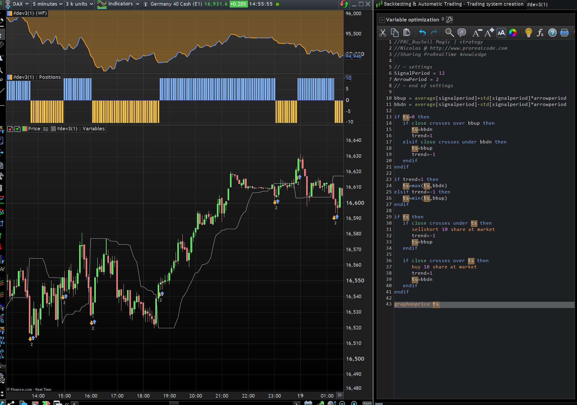 Il y a aussi l’IA qui peut être utilisée à l’aide de variables, mais les résultats sont très variés, d’ailleurs c’est trompeur, car en utilisant le logiciel prorealtime du site officiel j’ai obtenu des résultats “parfaits” qui ne variaient jamais et représentaient “le meilleur scénario possible”, en utilisant le prorealtime intégré à Saxo j’ai commencé pour la première fois à avoir des résultats qui variaient pour sur le même cours, avec les même paramètres, sur la même échelle de temps. De façon à me faire comprendre que le comportement de l’IA si on lui laisse beaucoup de marge est tout de même variable et sujet à l’erreur.