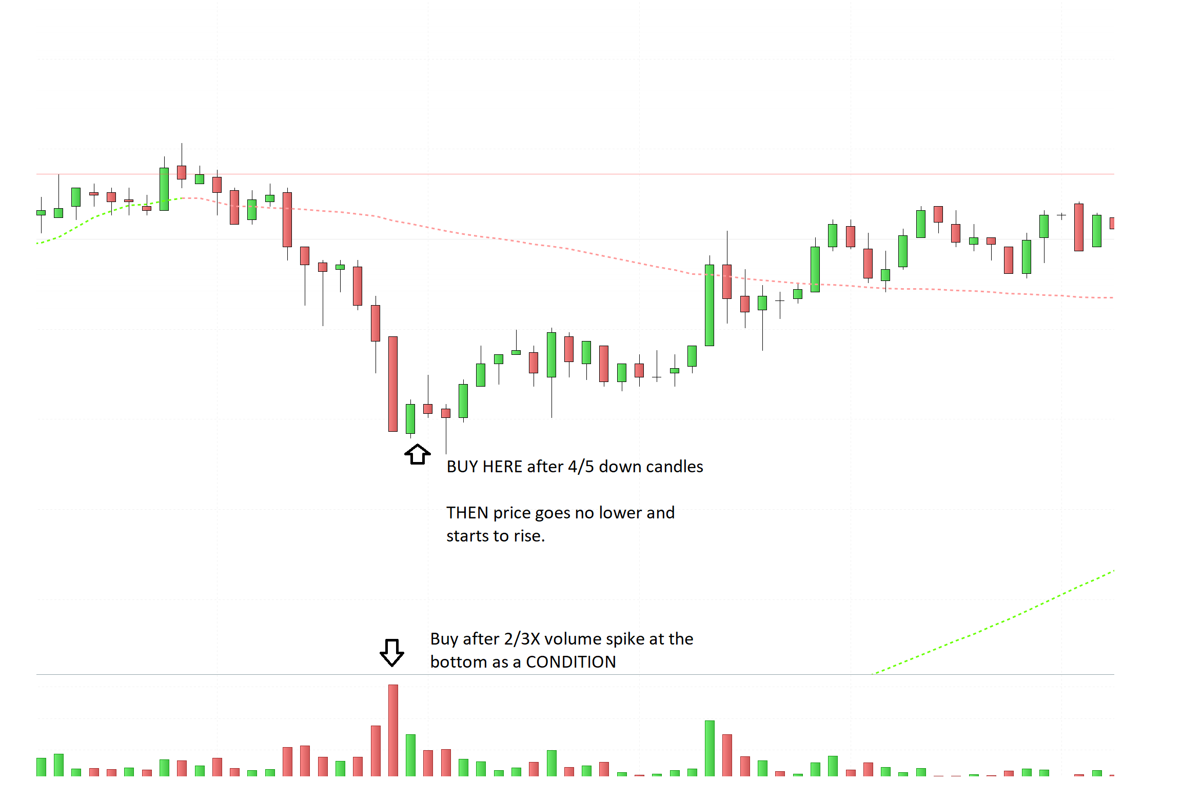 Does anyone have any ideas about buying a bottom of a market, I’ve been experimenting with trying to create an algorithm that buys if the price falls candle after candle, then flattens out, and starts going back up.