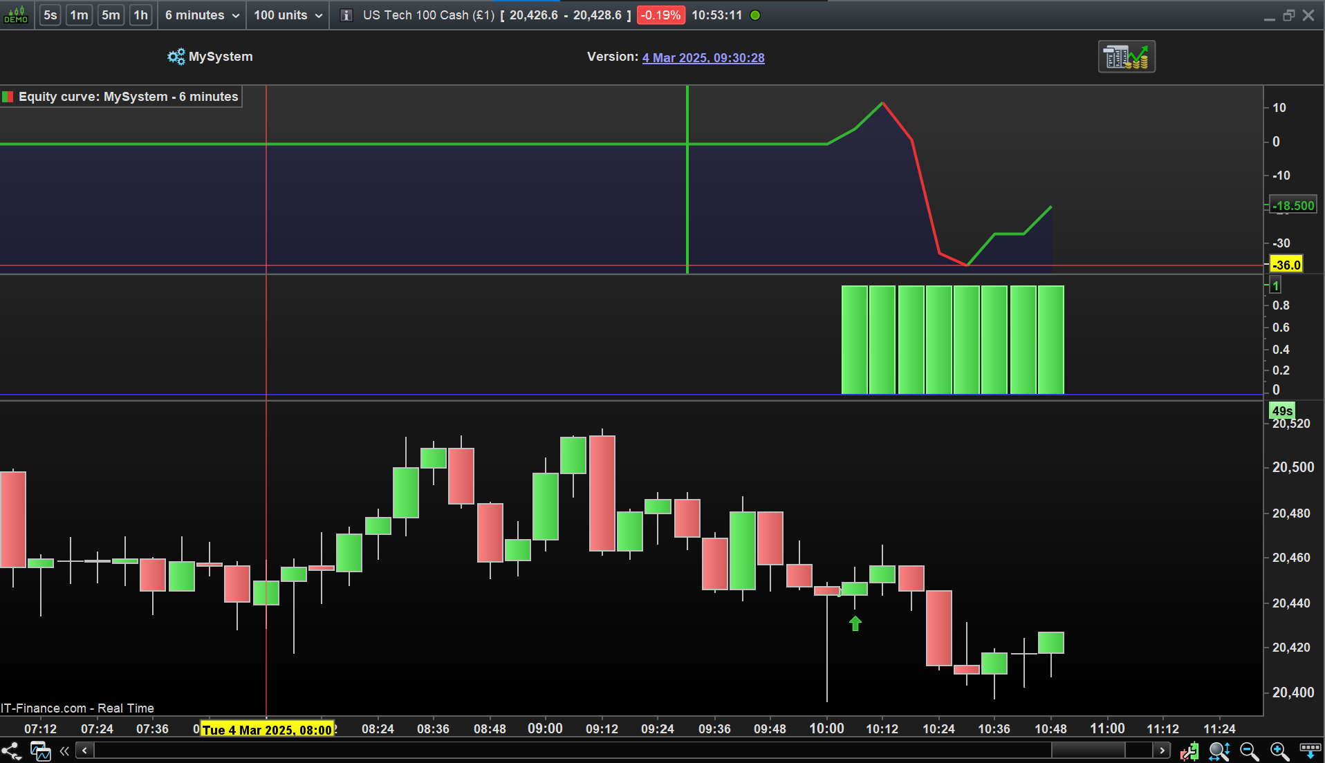 Your System (on NAS at M6 TF and with optimised variables) triggered / opened a Long trade for me within 36 mins of starting the Algo … see attached.