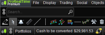 I start out today with a value of $30046 cash to be converted (no screenshot of that). I created a small position for a EUR instrument while the portfolio is in USD. I was set to lose that trade (win it would have been OK too 😉 ). Indeed it lost.