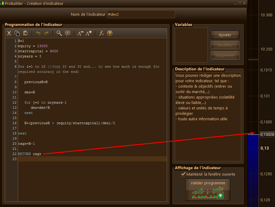 mreturn=(mprof/startcapital)*100 // monthly return as percentage (previous month)