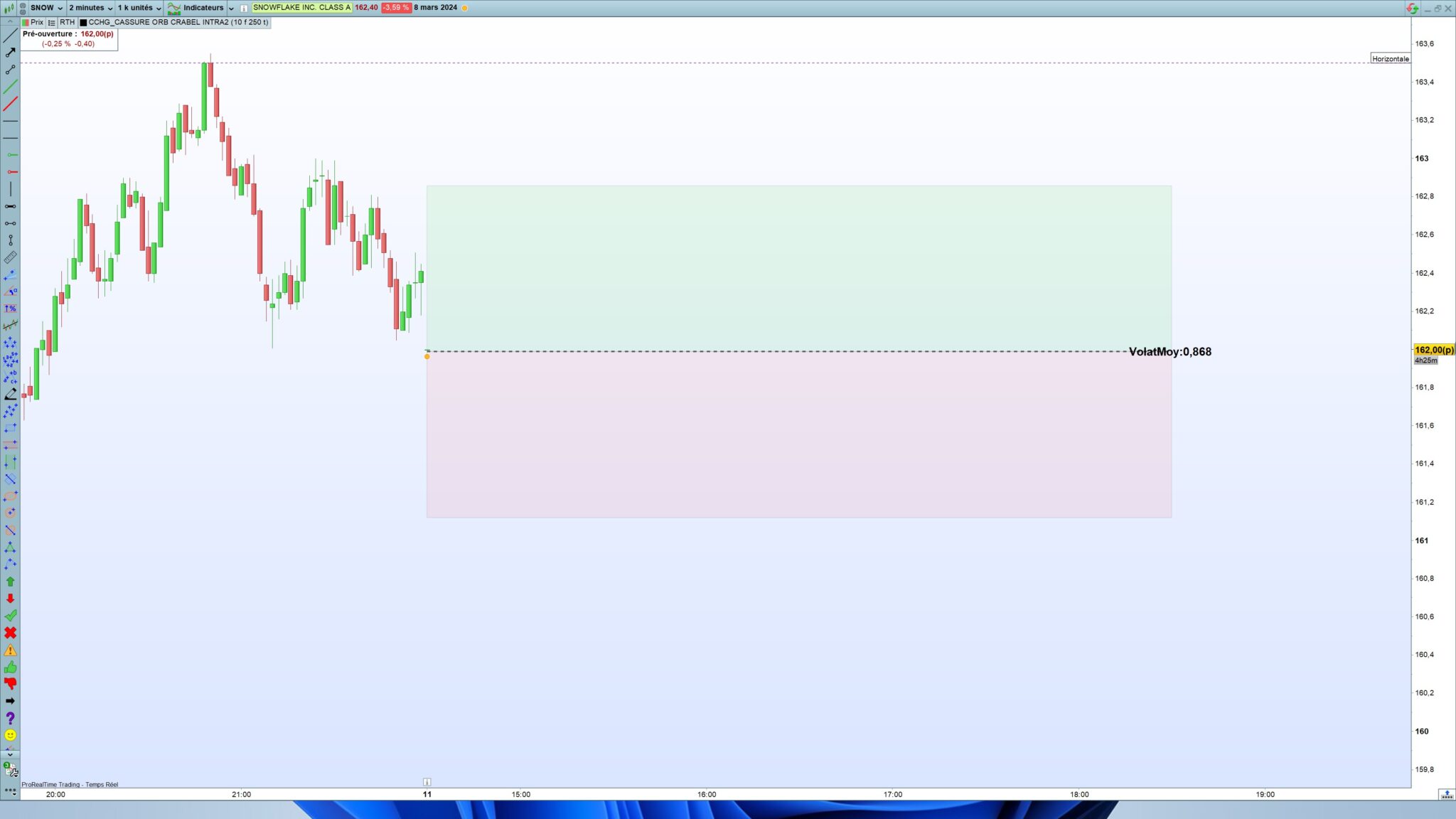En unité intraday, lorsque j’installe l’indicateur sur le graphique il fonctionne. Puis quelques secondes plus tard les zones colorées disparaissent il ne reste que la ligne en pointillée d’ouverture.