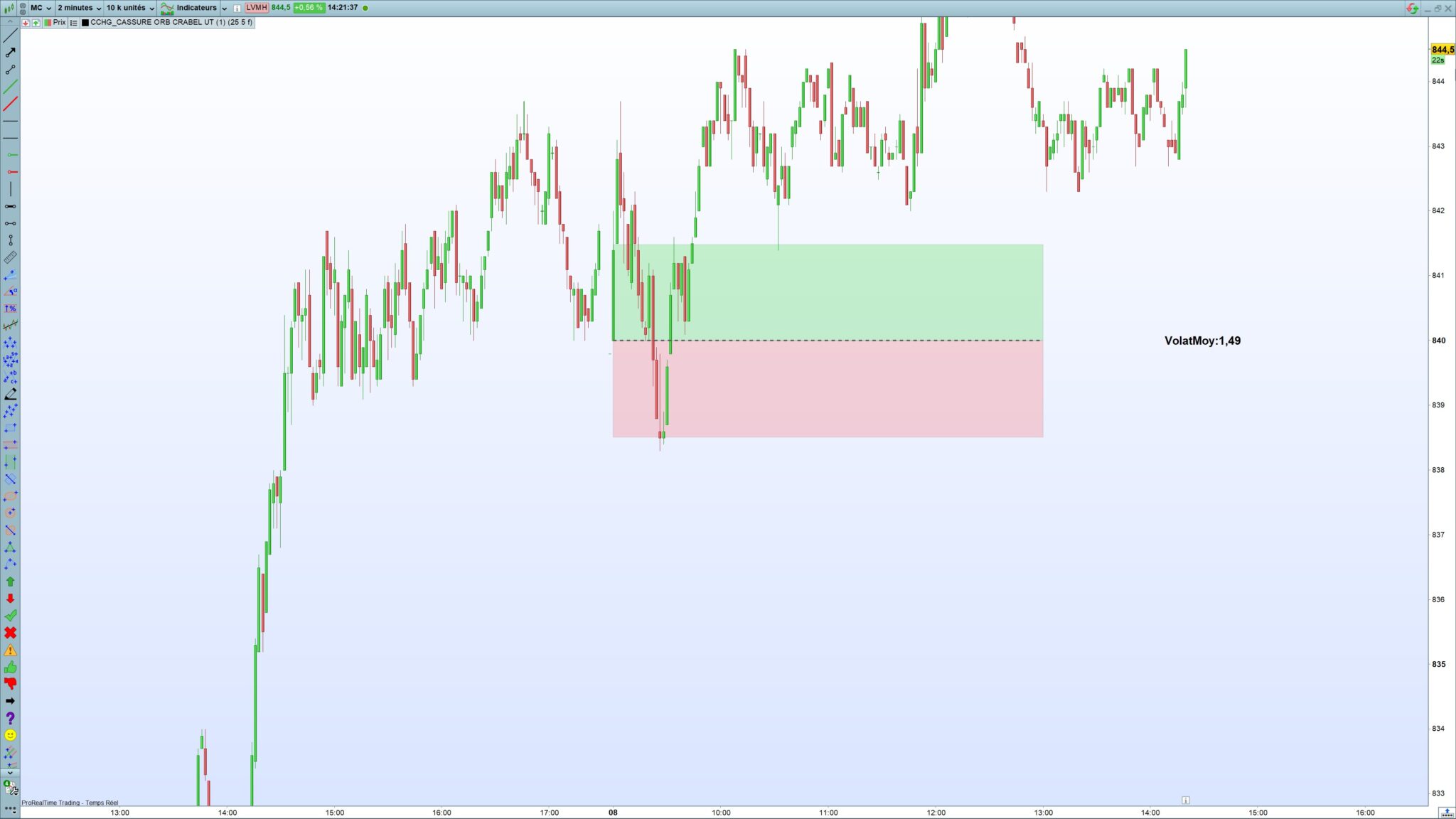 – Si le prix ne s’échappe pas de ces zones notamment la première heure de session (ou en milieu de session pour les inversions de journée) la journée est sans tendance.