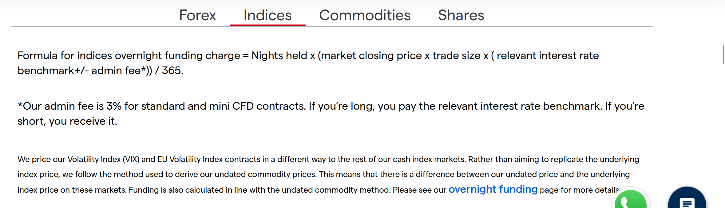 Sometimes it is written : Nights held x (market closing price x trade size x ( relevant interest rate benchmark+/- admin fee*)) / 365.