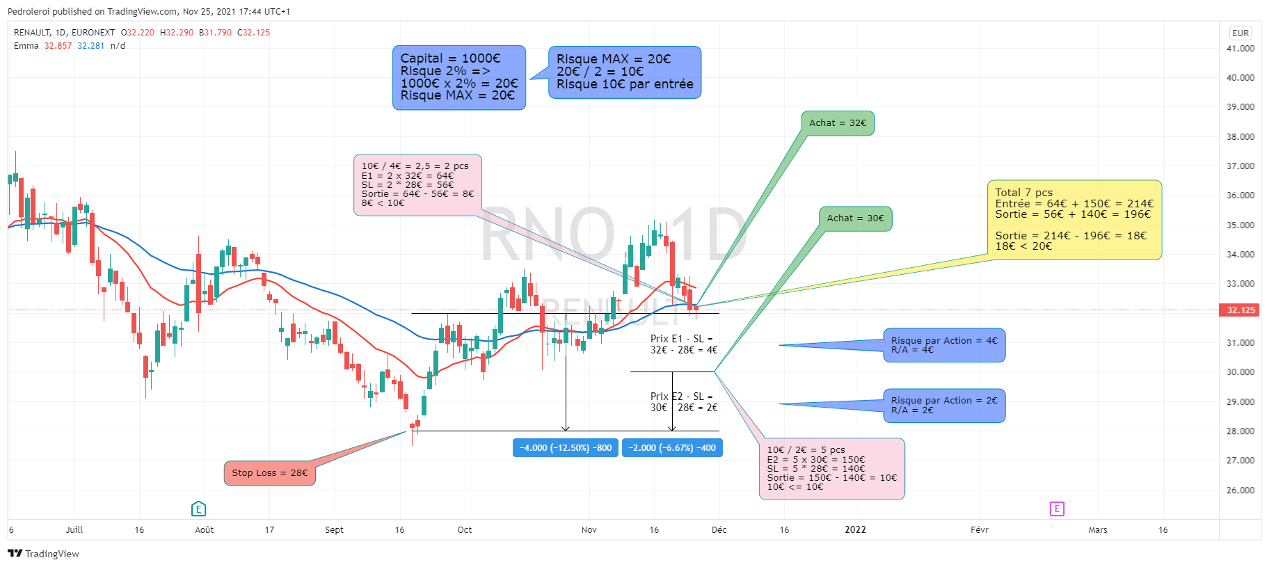 Je suis débutant avec le logiciel prorel time et je me demandais est-ce qu’il y a des fonctionnalités (je pense que oui) qui permettent de faire des calculs de position simple avec la gestion du risque que l’on veut le nombre 2 positions d’entrée et de sortie ? J’ai mis 2 capture d’écran juste pour l’exemple