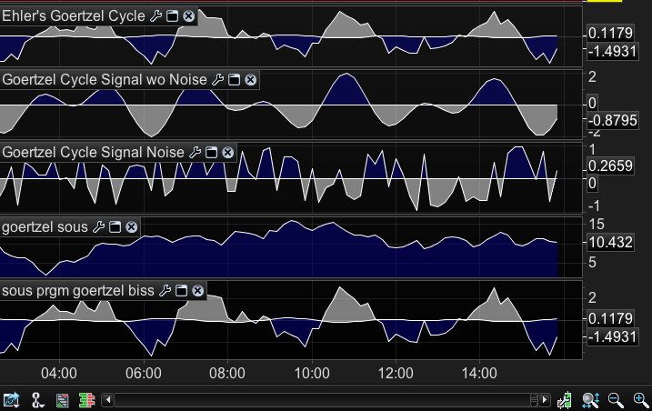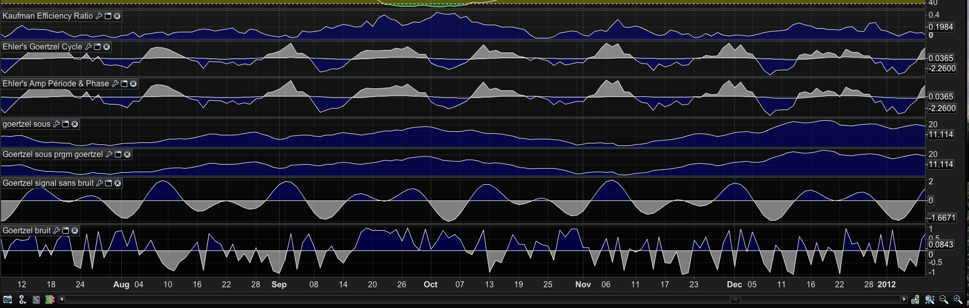 Btw, Nicolas, just to clarify, my comments above on this goertzel issue aren’t a reflection of your skills to solve the issue, as you are effectively doing it blind and aren’t able to see my set up and all the codes I have entered. Everyone else using the hk-lisse blog seems to have been able to use the code and it works (they would have been amended the code if it didn’t). Doesn’t the Ehler’s Universal Supersmoother Oscillator ‘trump’ any of these indicators anyway?