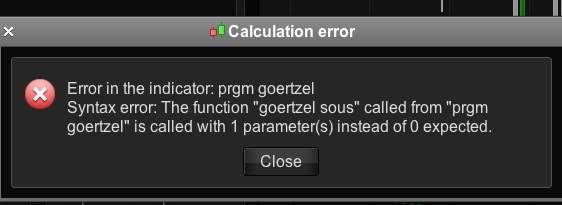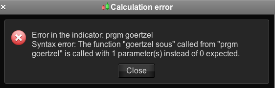 When I tried changing the Call function name within indicator “Cycle Prgm Goertzel” to “Cycle Sous Prgm Goertzel” I got the error below in the image?