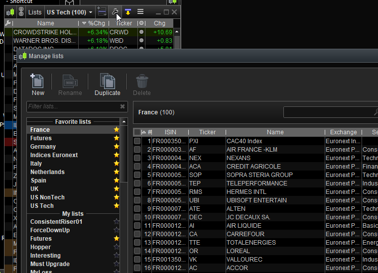 What I was looking for was a way to display 2 Lists side by side. For example, as you have US Tech in the background, now drop another next to it, any complete list would be fine but have two side by side and then blowup a heatmap (prorealmap) below both.