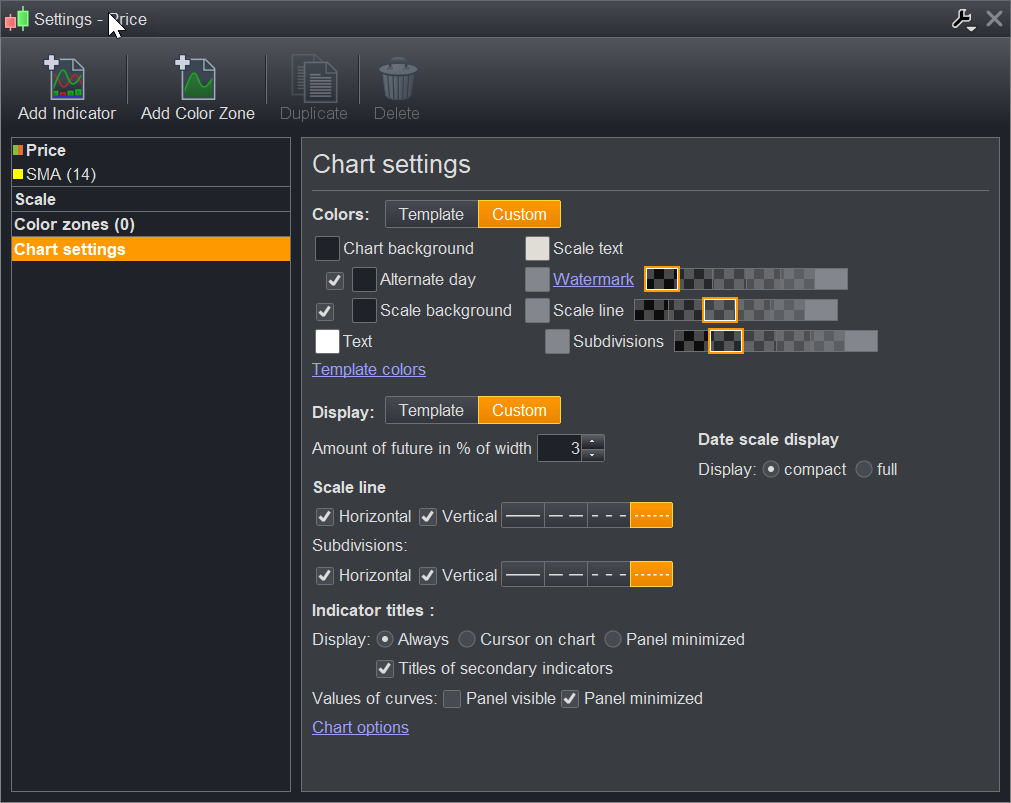 simple question, can you change the grid lines color or width, could not find the option in template settings, I have a black background and the thin grey lines are hard to make out on a large high res monitor