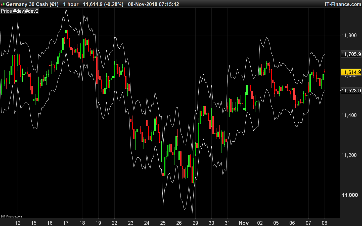 De esta forma el gráfico de velas queda insertado dentro de un canal formado por los dos líneas de cierre de vela con desviación positiva o negativa.