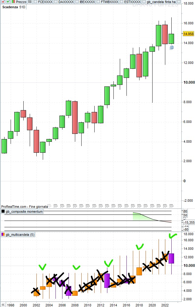 Mi piacerebbe avere la possibilità di disegnare un indicatore che metta insieme n candele, l’ho fatto (e allego il codice) ma come si vede dal disegno allegato disegna tutte le candele. è possibile far in modo che ne disegni 1 ogni n (vedi disegno)? Grazie